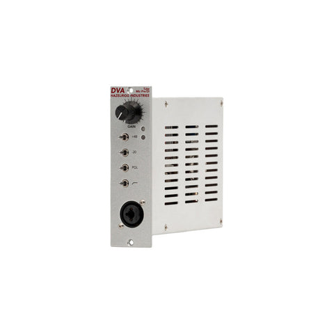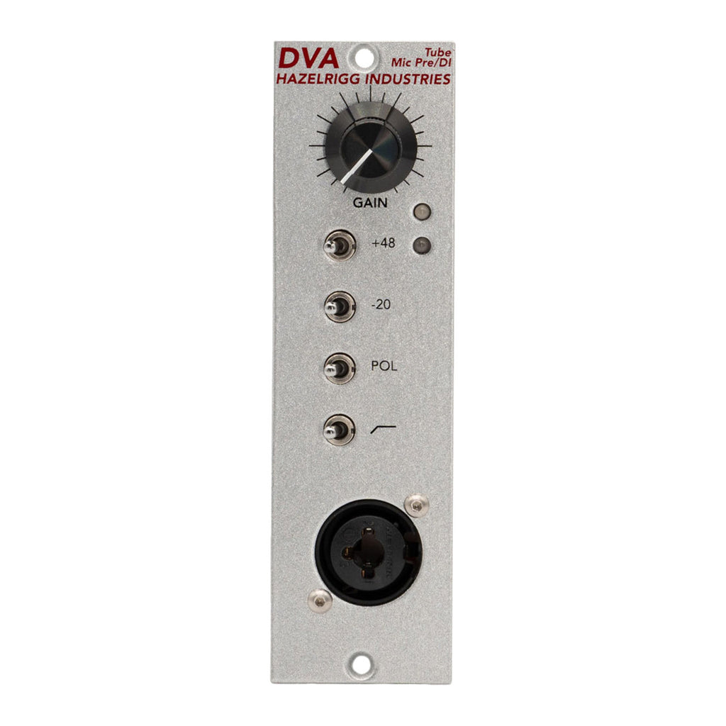 The DVA is a hybrid microphone preamplifier based on the Hazelrigg Industries VLC and D.W. Fearn VT-2 preamp. Utilizing a single 6072a vacuum tube, the input circuitry matches the VLC/VT-2 input stage exactly and features transformers in both the input and output stages.