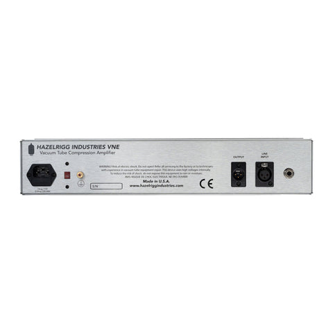 Ideal for tracking and mixing, the Hazelrigg Industries VNE features an all Class-A vacuum tube audio path, like all D.W. Fearn and Hazelrigg Industries products. As originally introduced in the D.W. Fearn VT-7 Stereo Tube Compression Amplifier, the gain reduction circuit utilizes readily available tubes to deliver classic tube compressor performance, while employing an innovative Pulse Width Modulation control circuit to drive the compression. The combination of this precision PWM control methodology and D.W. Fearn’s high fidelity compression amplifier design result in an audio tool that delivers comprehensive dynamics control, without imparting unwanted tonal artifacts on the source material. In use, the VNE can be applied as subtly or aggressively as desired while retaining a beautifully transparent sonic signature.